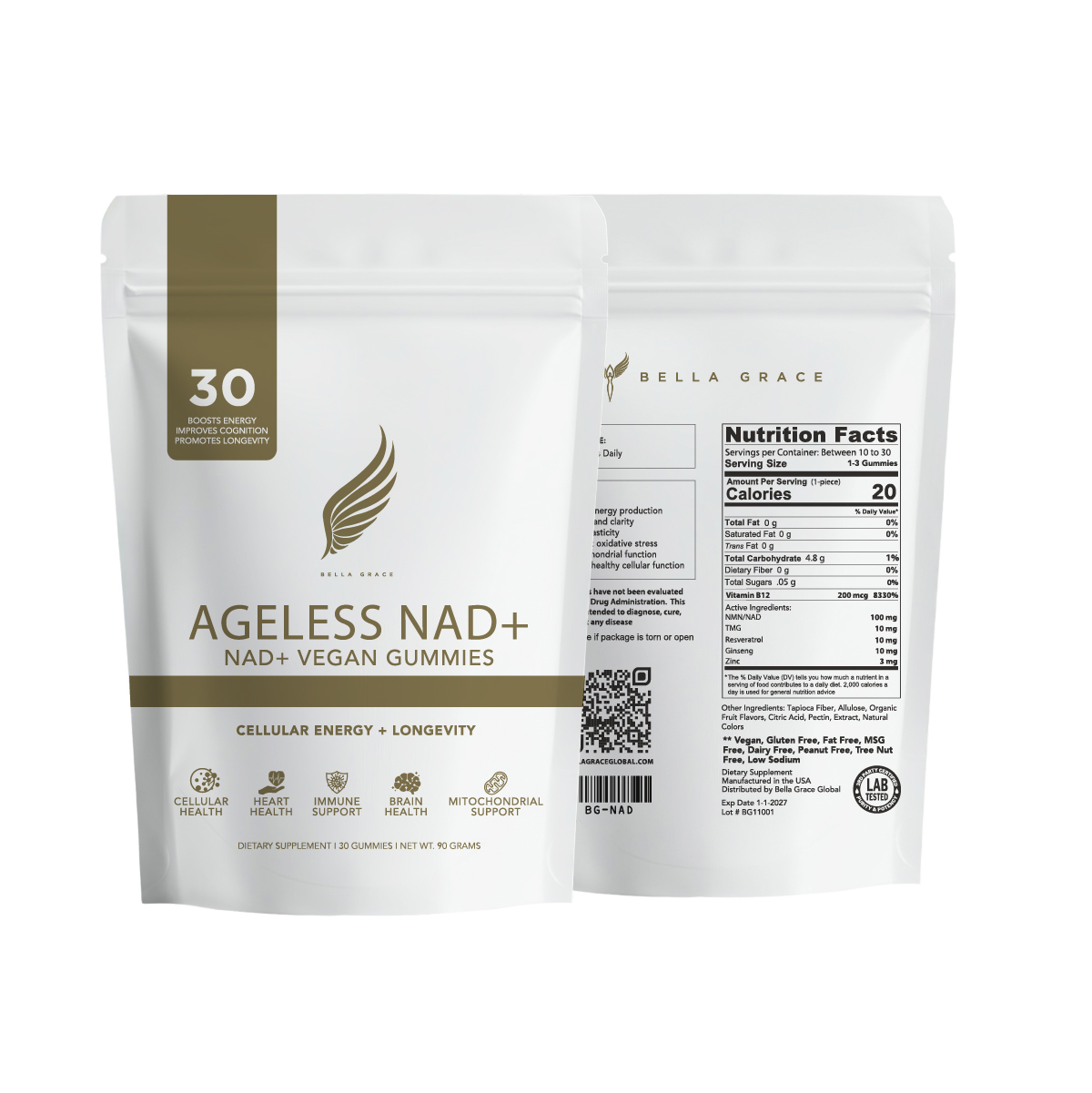 Ageless NAD+ was formulated based on emerging longevity research. Ageless NAD+ supports the pathways that help replenish NAD+ and optimize cellular performance.Formulated with NMN, the direct precursor to NAD+, alongside emergent antioxidants and sirtuin activators, this advanced blend is designed to support the enzymes responsible for mitochondrial renewal and cellular defense. It takes a multi-targeted approach to protecting and sustaining biological function at the cellular level.